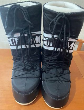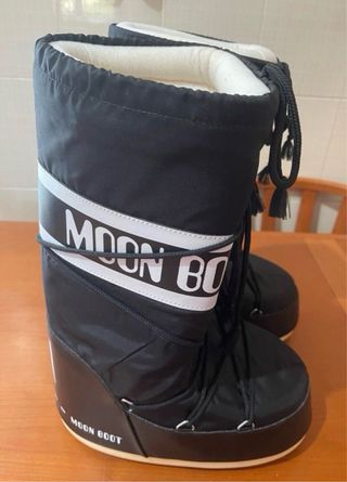 Moon Boot 39 - 41 Nero e Bianco Iconici stivali Moon Boot, perfetti per tenerti al caldo con stile. - Design imbottito. - Chiusura con lacci. - Logo a contrasto.