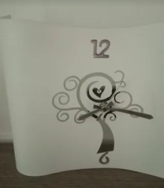 Elegante orologio da appoggio con un design moderno. - Realizzato in vetro. - Decorazione a forma di albero stilizzato con numeri. - Lancette sottili e moderne.