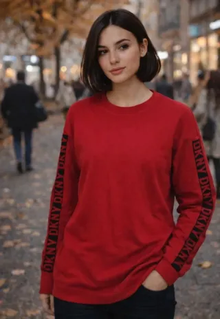 Felpa girocollo da donna con logo DKNY sulle maniche. - Girocollo - Maniche lunghe - Logo DKNY a contrasto sulle maniche