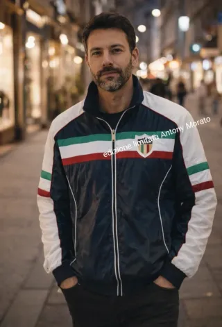 Giacca sportiva da uomo Antony Morato, edizione limitata con richiami all'Italia. - Design a zip intera. - Inserti a contrasto sulle maniche e sul petto. - Patch con stemma tricolore sul petto.