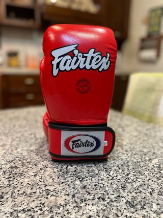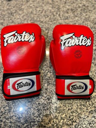 Guantoni da boxe Fairtex BGV1 rossi. (Nuovi) la taglia indicata è 10 once (oz). Progettati per una vestibilità compatta ed ergonomica. Ideali per Muay Thai, kickboxing e boxe.