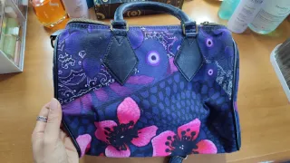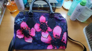 Borsa a mano con tracolla nera originale Desigual , comprata allo store ufficiale di Portal Del Angel a Barcellona. - Design unico con fiori rosa e viola. - Dettagli in pelle nera. - Cerniera superiore. Borsa tenuta in modo maniacale così come da foto .