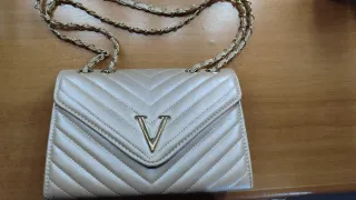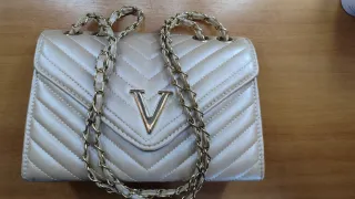 Elegante pochette color rosa antico, perfetta per completare ogni outfit. - Tracolla a catena color oro. - Design trapuntato a V. - Logo V dorato sul davanti.