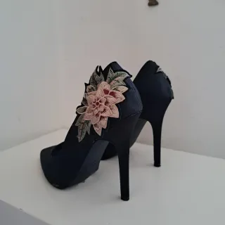 Decolleté nere Limited Edition fiori rosa