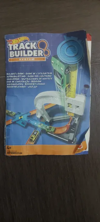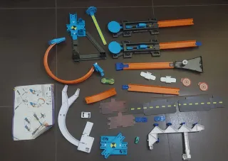 Set di piste Hot Wheels per bambini dai 4 anni in su. Include vari pezzi per costruire percorsi divertenti. - Pezzi di pista arancioni. - Elementi di lancio blu. - Supporti e connettori. - Istruzioni incluse. Manca scatola originale