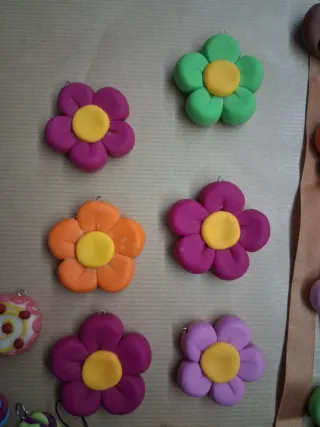 Lotto di 26 creazioni artigianali realizzate in Fimo. - Diverse forme e colori. - Ideali per decorazioni o come ciondoli.