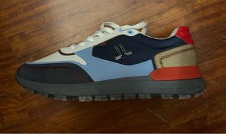 Scarpe Lancetti, indossate solo una volta per errore di misura. - Taglia 43. - Design moderno con inserti blu e rossi.