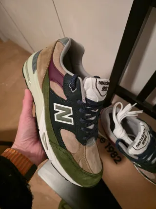 Scarpe New Balance 991 NTG. - Design patchwork con pannelli in suede. - Logo N laterale. - Dettagli color sabbia, verde, bordeaux e grigio. Nuove mai indossate taglia 42.5 originali con scontrino