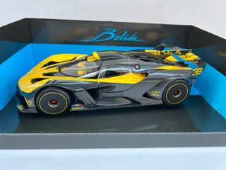 Modellino Bugatti Bolide del 2020 in scala 1/18. - Dettagli fedeli all'originale. - Colore grigio e giallo. - Marca Bburago.