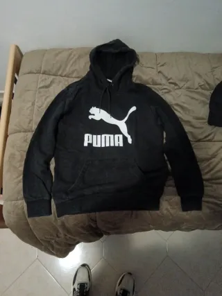 Felpa con cappuccio Puma di colore grigio. - Logo Puma bianco sul petto. - Tasca a marsupio. - Cappuccio con laccetti regolabili.