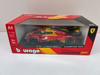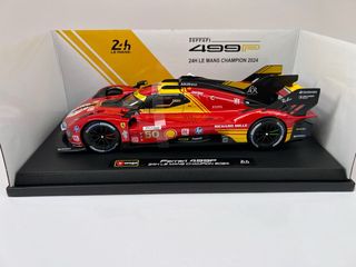 Modellino della Ferrari 499P, vincitrice della 24 Ore di Le Mans nel 2024. - Scala 1:18. - Dettagli fedeli alla vettura da competizione. - Base espositiva inclusa.