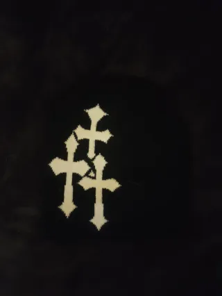 Cappellino invernale con un design unico. - Taglia unica. - Decorato con tre croci nere a contrasto .