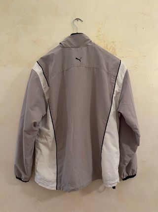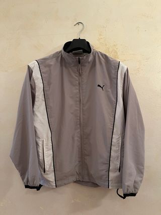 Prezzo di mercato: 30€ Vendo Giacca a Vento Puma Vintage Anni '90/2000 in condizioni quasi perfette. Brand: Puma Stile: Giacca a vento / Track Jacket con cerniera intera e colletto alto. Colore: Grigio chiaro con inserti bianchi e profili neri a contrasto con Logo Puma ricamato sul petto e sul retro. Taglia: L Condizioni: Ottime condizioni vintage con Tessuto integro, cerniere funzionanti, assenza di macchie o strappi visibili. Dettagli: Tasche laterali con cerniera, polsini elasticizzati.