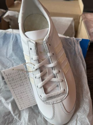 Sneakers Adidas dal design classico e pulito. - Tomaia in pelle bianca. - Dettagli a contrasto beige. - Suola in gomma. - Chiusura con lacci.