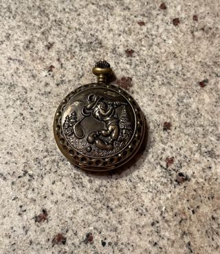 Prezzo di mercato: 70€ Vendo Orologio raro tascabile vintage - Mickey Mouse golfista - Verichron × Disney anni 80' Marca: Verichron Movimento: quarzo Cassa in metallo con finitura dorata/ottone Tema raro: Topolino protagonista sportivo (golf) sulla cassa Quadrante bianco con numeri arabi e illustrazione Disney Condizione: mai usato e mantenuto in condizioni ottime, la cassa non presenta graffi o ammaccature