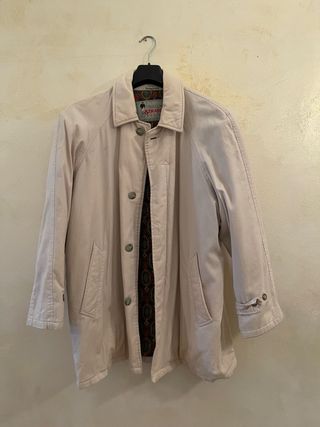 Prezzo di mercato: 60€ Vendo Elegante Soprabito Vintage World's Stratos -Made In Italy in ottime condizioni Marca: World's Stratos Clothing Colore: Beige chiaro Tessuto esterno: 100% cotone Fodera: 55% Modal 45% cotone Imbottitura: 100% poliestere Taglia: L/ XL Condizioni: Ottime condizioni vintage no usure strappi o macchie