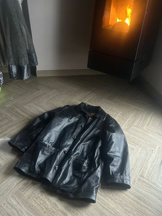 GIACCA IN PELLE VINTAGE SERGIO DELLARIO - MADE IN ITALY Taglia: 50 (EU) - corrisponde a XL/XXL 🎨 Colore: Nero ✨ Caratteristiche: • Pelle naturale di alta qualità • Produzione artigianale italiana (Venezia) • Fodera interna trapuntata per maggiore comfort • Colletto classico • Due tasche frontali con dettagli in pelle intrecciata • Chiusura con cerniera e bottoni • Stile vintage anni ’80-’90