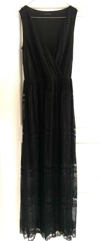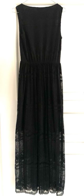 Elegante vestido negro de Patrizia Pepe, perfecto para ocasiones especiales. - Diseño sin mangas. - Detalle de ojetes metálicos en los hombros. - Corte entallado que realza la figura.