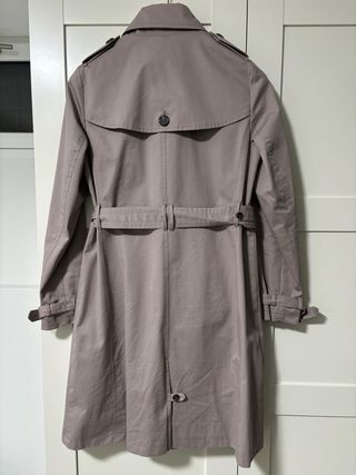 Vendo trench da donna elegante e versatile, colore tortora/grigio caldo. Modello classico doppiopetto con bottoni scuri, cintura in vita regolabile e cinturini ai polsi. Linea femminile e raffinata, perfetta per mezza stagione, lavoro o uso quotidiano. Un capo senza tempo, facile da abbinare sia a look casual che più formali.
