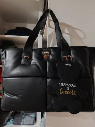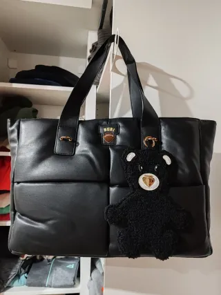 Borsa a mano Le Pandorine in ecopelle trapuntata. Un accessorio versatile e alla moda. - Design trapuntato a quadri. - Manici in ecopelle. - Dettagli metallici color oro. - Charm a forma di orsetto incluso.