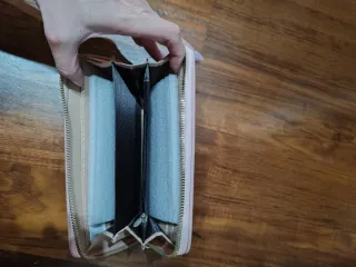 Elegante portafoglio da donna. - Materiale effetto pelle. - Chiusura con zip. - Dettaglio charm sulla zip.