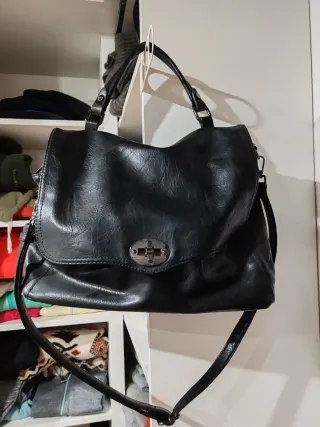 Borsa a tracolla in similpelle nera, pratica e versatile. - Chiusura con cerniera. - Tracolla regolabile inclusa.