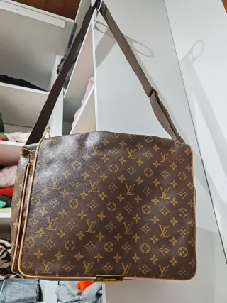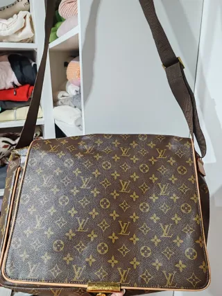 Borsa a tracolla simile Louis Vuitton in tela Monogram. Un modello capiente e versatile, perfetto per l'uso quotidiano. - Tela Monogram marrone. - Dettagli in pelle naturale. - Chiusura con fibbia dorata.