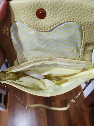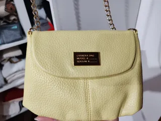 Borsa a tracolla in ecopelle, colore giallo paglierino. - Dettaglio placca dorata con logo Carrera Bag. - Tracolla a catena dorata. - Chiusura con patta. - Finitura martellata.