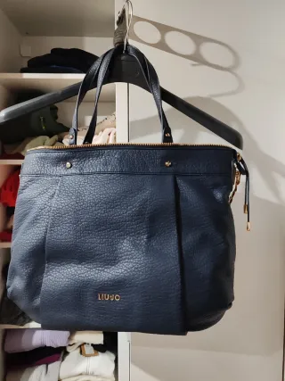 Borsa Liu Jo in pelle blu con finiture dorate. - Materiale: pelle martellata - Chiusura con zip - Logo Liu Jo dorato sul davanti - Manici in pelle - Dettagli con nappine dorate sui lati
