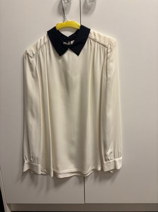 Vendo splendida blusa color avorio/crema con elegante colletto nero a contrasto. Modello fluido, dal taglio morbido e femminile, perfetto sia per l’ufficio che per un’occasione più formale.