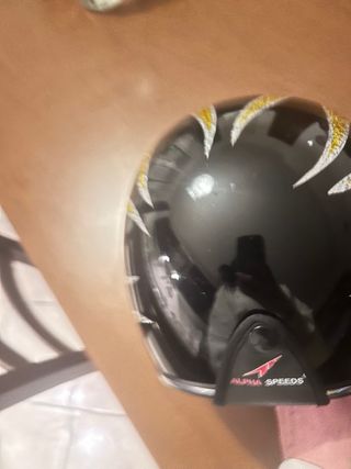 Casco jet con un design unico a fiamme. - Finitura glitterata. - Dettagli in argento sui bordi. Non omologato ma utlizzabile x scooter o monopattino Taglia piccola M unisex Nuovo mai usato x taglia errata