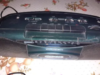 Radio stereo portatile IRRADIO in discrete condizioni Il mangia cassette non funziona e manca l'antenna, ma la radio funziona perfettamente. - Design compatto e maniglia per il trasporto. - Altoparlanti stereo integrati. - Funzione radio AM/FM.