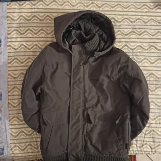Giubbotto invernale Carhartt in tonalità grigio scuro. Presenta un design con cappuccio e chiusura frontale. - Due tasche frontali con patta. - Polsini e fondo a costine. - Fodera interna imbottita.