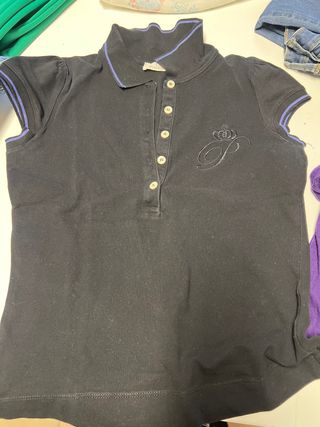 Maglietta a maniche corte con colletto e bottoni. - Logo ricamato sul petto. - Dettagli a righe sul colletto e sulle maniche.