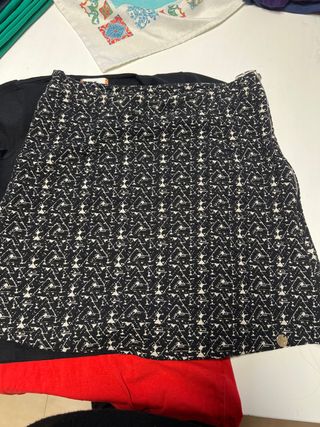 Gonna con fantasia geometrica in bianco e nero. - Tessuto con trama particolare. - Dettaglio zip laterale. - Logo applicato sul fondo.