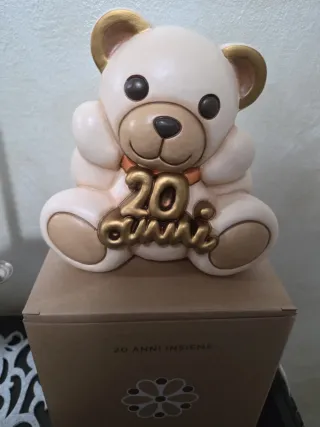 Orsetto Thun celebrativo per i 20 anni insieme. Un dolce ricordo per un'occasione speciale. - Design a forma di orsetto. - Decorazione 20 anni insieme dorata. - Colore beige con dettagli dorati.