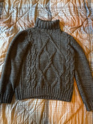 Elegante maglione in lana con un classico motivo a trecce e collo alto. - Design a trecce. - Collo alto a costine. - Orlo e polsini a costine.