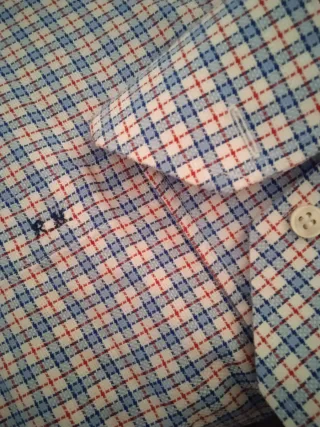 Camicia a quadri R. Schrecker con un motivo a quadretti piccoli. - Colletto classico. - Chiusura con bottoni. - Taschino sul petto con iniziali ricamate.