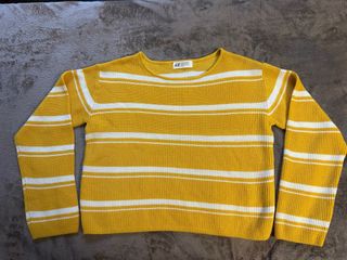 Maglioncino a maniche lunghe H&M con fantasia a righe. - Colore giallo ocra con righe bianche. - Tessuto a costine.