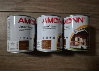 Vendo 3 barattoli di impregnante protettivo per legno Amonn Aqua Lignex, colore Noce. - Protezione a base d'acqua per il legno. - Ideale per esterni. - Ogni barattolo contiene 4 litri.