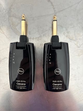 Sistema wireless Getaria GWS-X3 Pro, composto da trasmettitore e ricevitore audio. - Trasmettitore audio GWS-X3 Pro - Ricevitore audio GWS-X3 Pro - Design compatto e portatile - Connessione jack da 6.35mm - 4 canali - vendo con custodia e cavo sdoppiato di ricarica