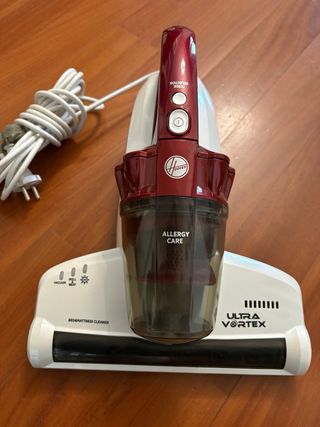 Aspirapolvere Hoover per letti e divani. MAI USATO - Contenitore trasparente per la polvere. - Selettore modalità. - Cavo di alimentazione bianco.