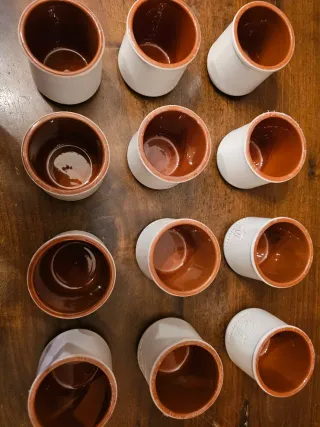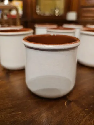 Set di 12 vasetti per alimenti realizzati in terracotta. Ideali per monoporzioni di dessert (creme, cheescake, ecc..), come tazzine da caffè, oppure utilizzabili per piccole piante grasse. Resistenti in forno e microonde, lavabili in lavastoviglie. - Materiale: Terracotta. - Finitura interna color terra di Siena. - Design artigianale.