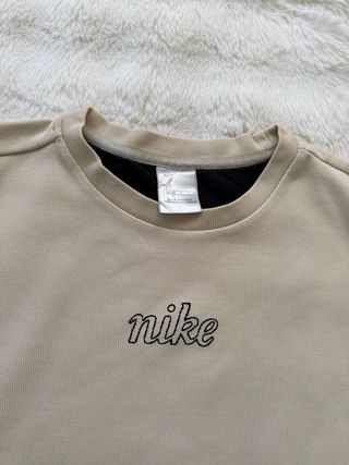 Felpa girocollo Nike dal design minimalista e moderno. - Logo Nike ricamato sul petto. - Colore beige neutro e versatile. - Tessuto confortevole per un uso quotidiano.