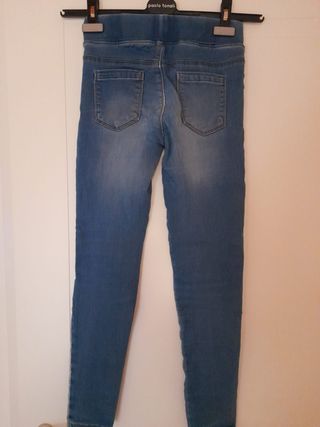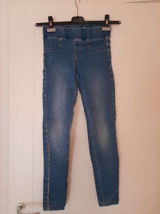 Pantaloni jeggings in denim blu per bambina, taglia 11-12 anni. - Vita elasticizzata. - Dettaglio a contrasto lungo la gamba.