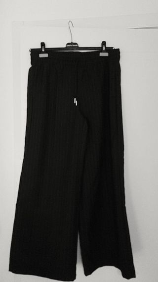 Pantaloni eleganti con righe sottili. - Vita elasticizzata con coulisse. - Gamba larga. - Tessuto leggero.