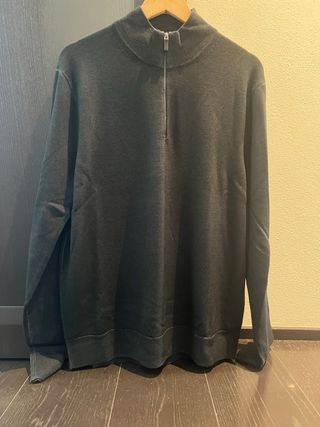 Maglione da uomo con zip frontale. - Collo alto a costine. - Zip centrale. - Polsini e fondo a costine.