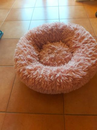 cuccia pelosa morbidissima,50 cm diametro. Per gatti di tutte le taglie o cani di taglia piccola. In ottimo stato. Con fondo antiscivolo
