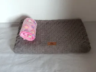 Cuccia sfoderabile: 48cmx33cm Altezza: 5cm. Set composto da una cuccia e una copertina morbida, ideali per cani e gatti di piccola taglia. - Cuccia in tessuto velluto, tipo peluche. - Copertina con fantasia di impronte e cuori in pile, il colore da scegliere. Scegli il colore della coperta tra lisa, marrone, blue, rosa.