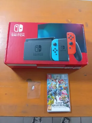 Console Nintendo Switch usata, completa di tutti gli accessori originali. - Docking station - Joy-Con grip - Cavi di alimentazione e HDMI - Joy-Con (sinistro e destro) -micro sd 256 giga -Gioco Super smash bros incluso
